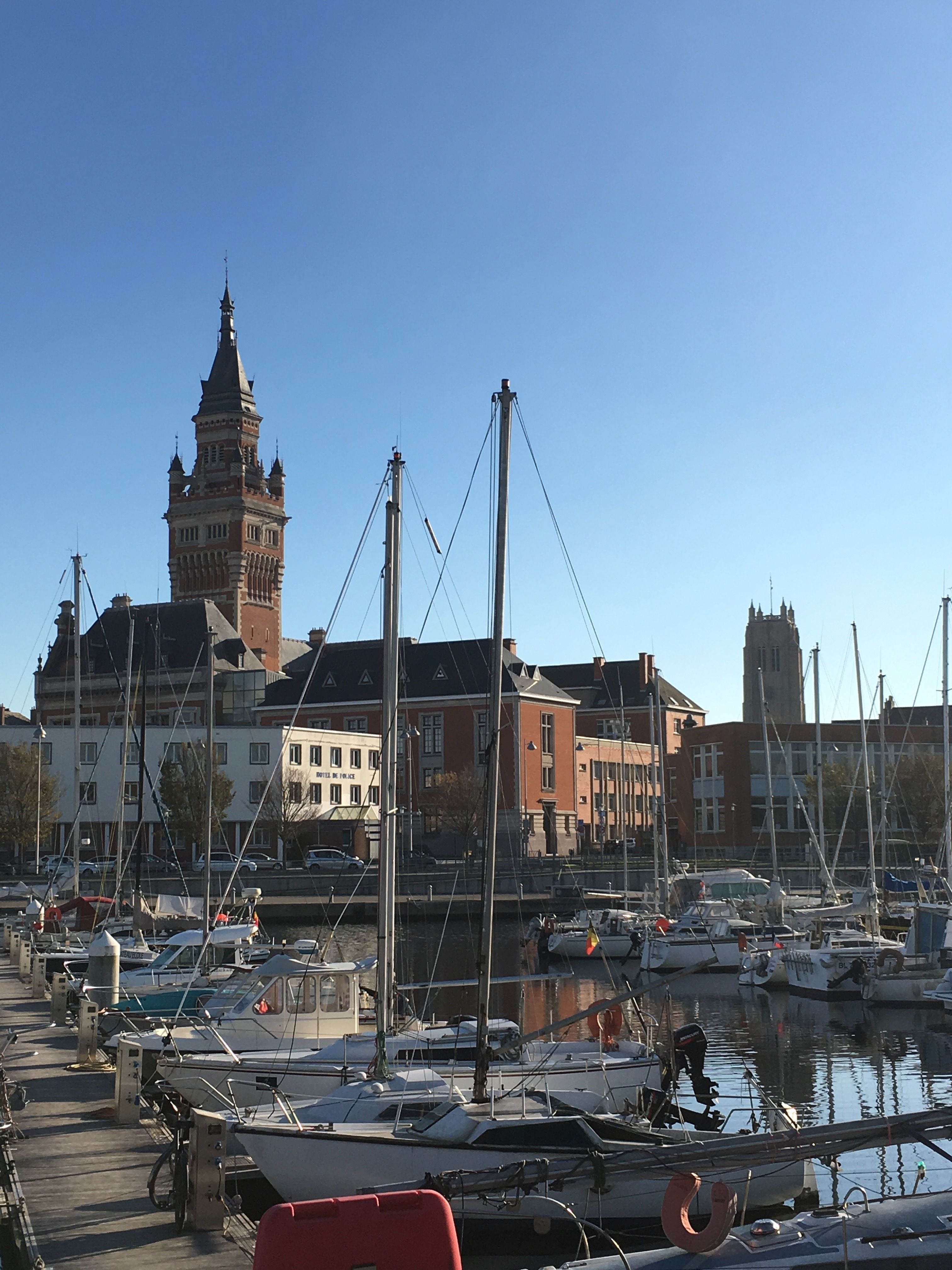 Looping back around the harbor to catch my train, I got a shot of the Hotel de Ville and St. Eloi’s bell-tower in the distance.