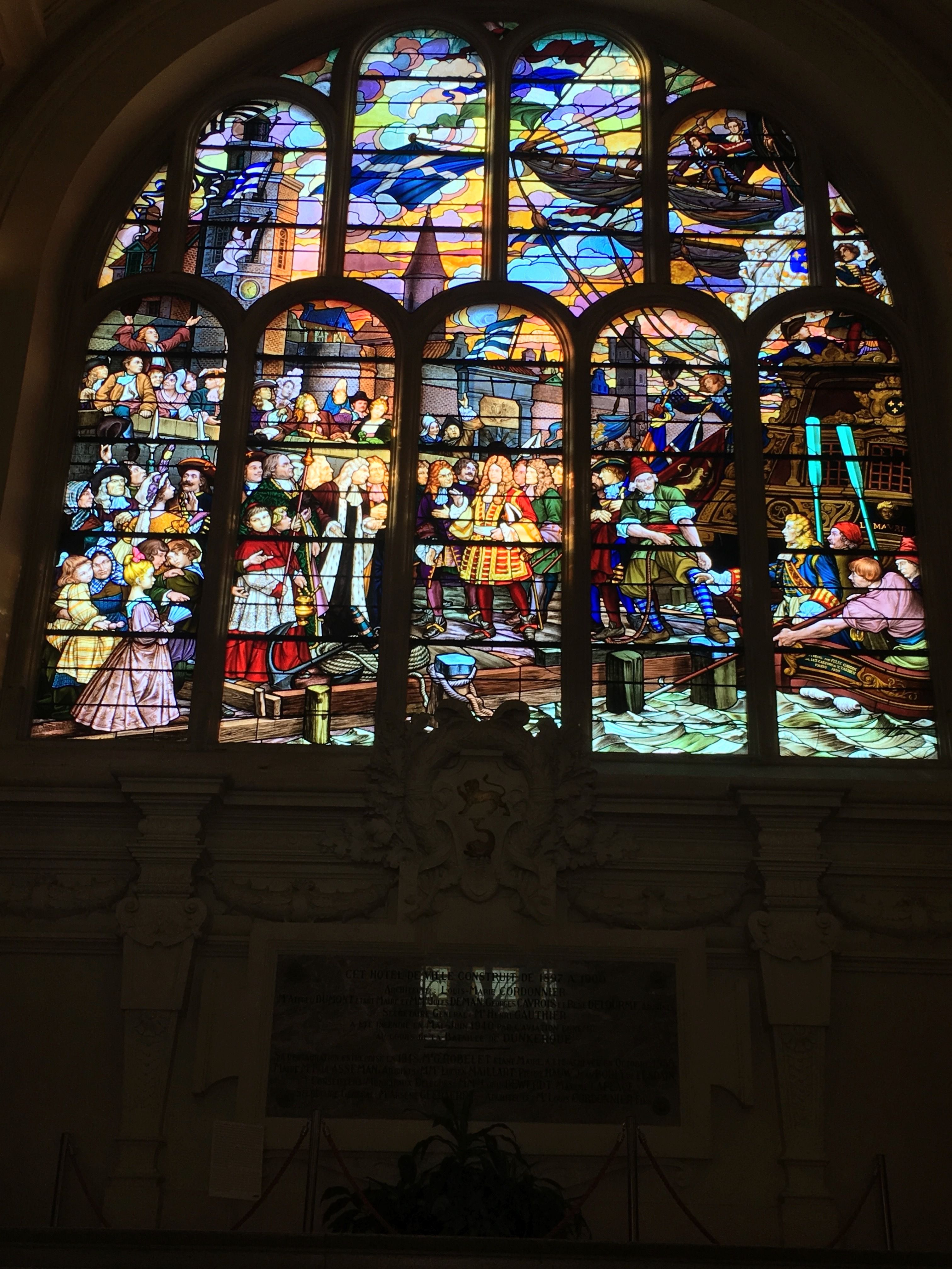 The Hotel de Ville, just north of the church & bell tower, was built in the flemish rennaissance style in 1901. A statue of Louis XIV above the door celebrates Dunkirk’s definitive reunion to France in 1662, and stained glass inside shows Jean Bart’s triumphant return to the city after a naval victory in 1694.