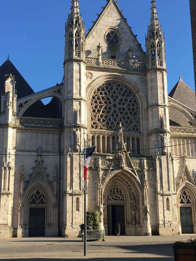 In 1782, the church was disconnected from the bell-tower and given a neo-classical façade, which due to poor construction lasted less than a century before being replaced by a gothic façade in the Ile-de-France (Paris region) style.