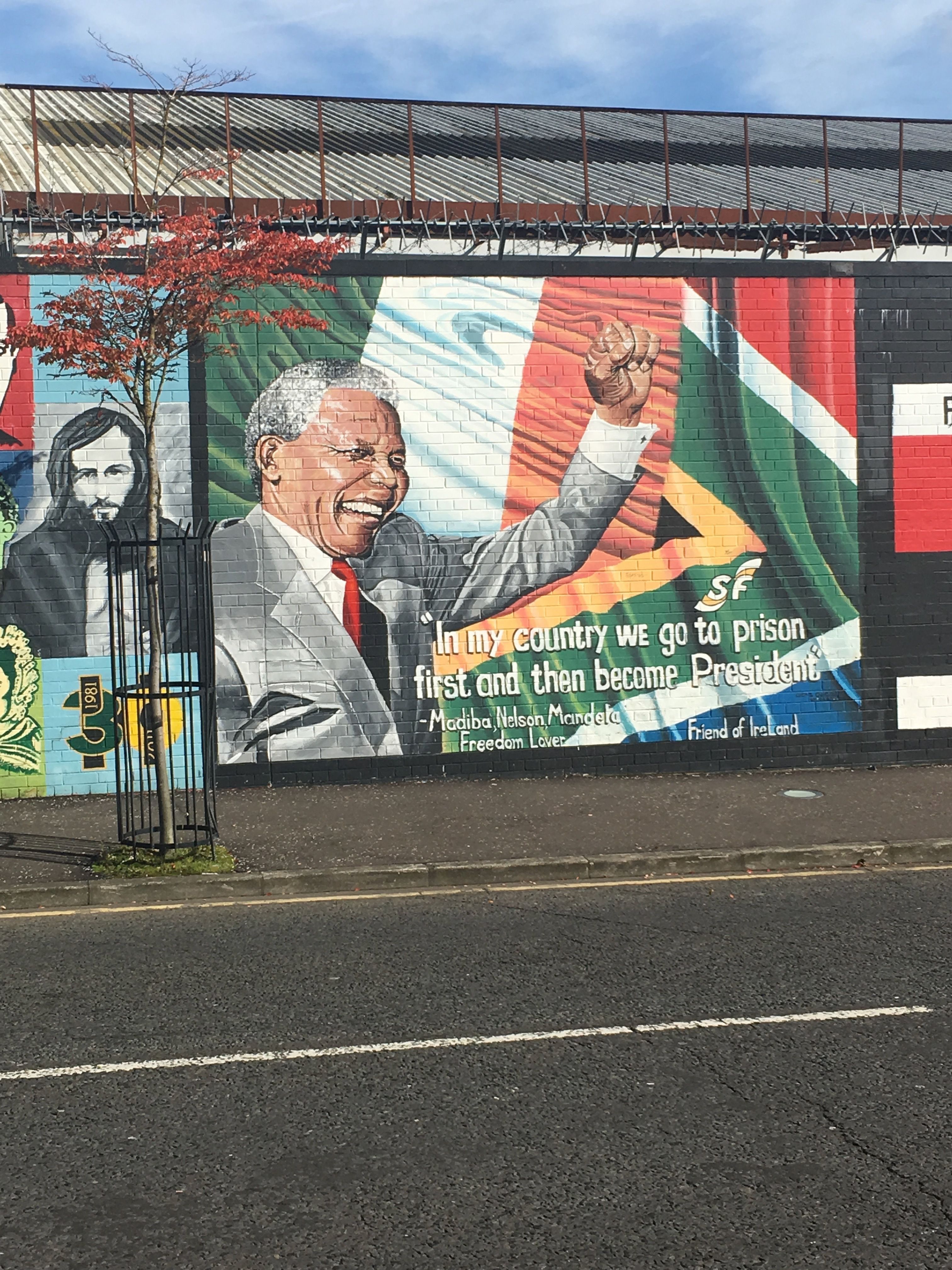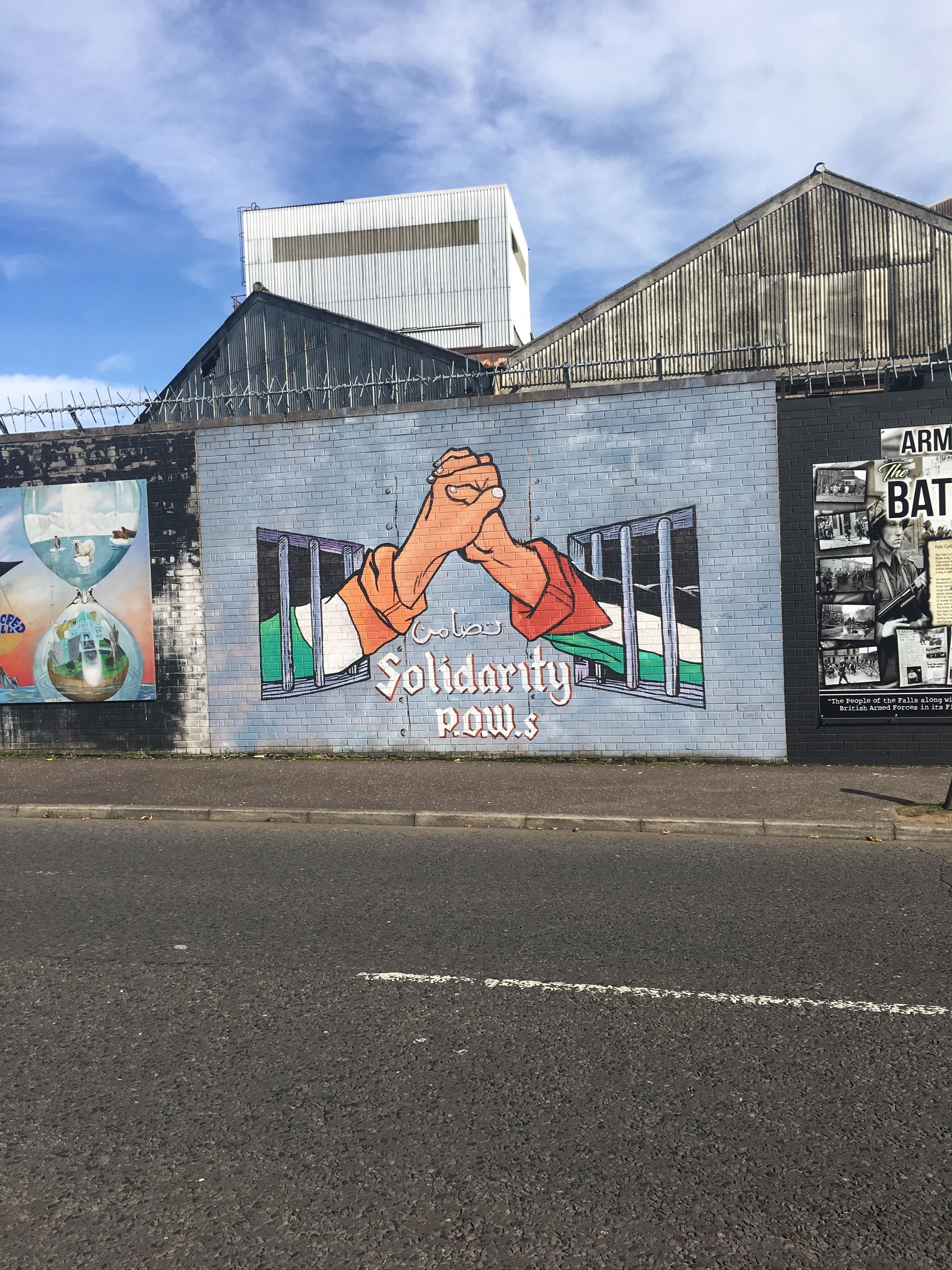 After grabbing a much-needed breakfast (our B&B was really just a B), we took a “black cab tour” of the city. Basically, a super opinionated driver takes you around and shows you where shit went down during the troubles. Our guide, Patrick, was a fervent Irish nationalist who maintained his own sort of objectivity (he believes the British government has kept its own citizens in the dark through propaganda, and that radical loyalists are outnumbered by decent protestants). I learned from him that we were not in Northern Ireland, part of the United Kingdom, but rather in the British-occupied north of Ireland. Also, he wouldn’t directly state it, but I’m pretty sure he had been an IRA (or equivalent organization) volunteer. All in all, it was a fascinating experience. Here are some of the awesome murals we saw on the tour: