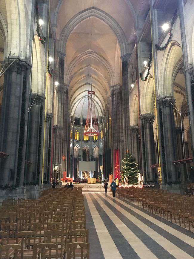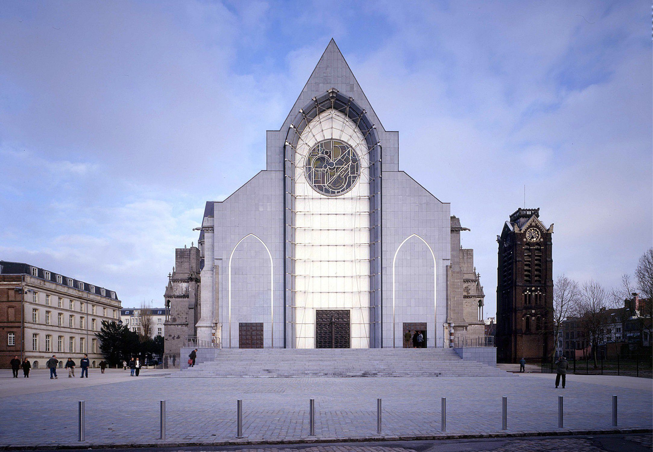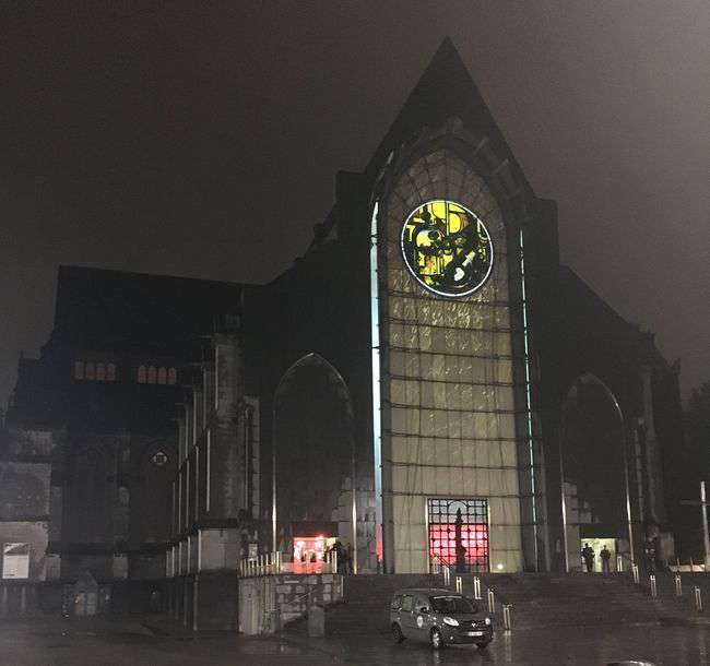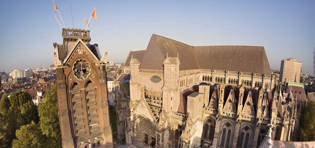 Fast forward another 150 years: the new church is finally completed just before the new millenium (the 19 December, 1999). And it isn’t even a simple church anymore! In 1913, the unfinished Notre-Dame-de-la-Treille became a cathedral–seat of the newly formed diocese of Lille (in 2008 it become the seat of an archdiocese, and in 2009, a national historical monument). Due to its gradual construction over two centuries, the architecture is haphazard and shifts from neogothic stone to downright modern steel & concrete as you move from East to West. The original design for a western façade included two large towers, but since this was scrapped somewhere along the road, a hastily constructed «campanile» (free standing bell tower) from 1870 is still housing some donated bells just south of the Cathedral.