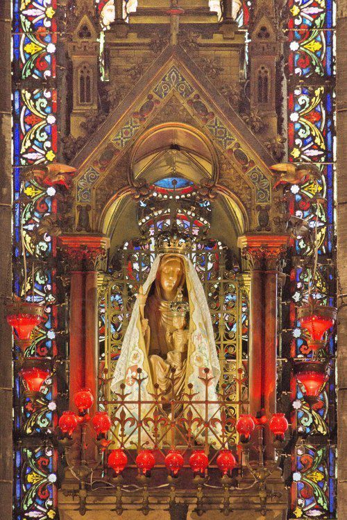 Fast forward 1200 years: Lille’s episcopal seat of eight centuries was destroyed in the Napoleonic wars, and Place Gilleson was chosen for its replacement. The destroyed church had housed a XII century statue of the Virgin Mary, which supposedly performed many miracles throughout the middle ages and was an object of special devotion in Lille (after conquering Flanders in 1667, the sun king Louis XIV stood in front of the statue and pledged to respect the Lillois’ liberties). The miraculous statue lent its name to the new church on Place Gilleson: «Notre-Dame-de-la-Treille».