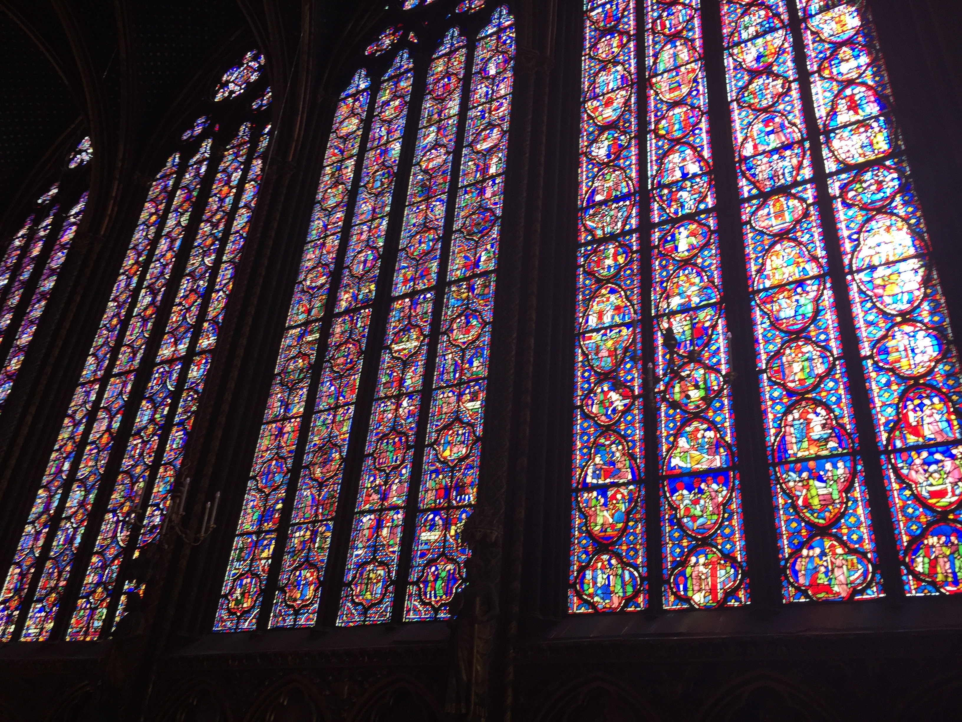 Saint Louis (the 13th century french king, not the second best city in Missouri) built it to hold the crown of thorns, a piece of the true cross, and some other relics. His dad died without crowning him (a tradition up till then), so he had legitimacy issues, so when the crusaders sacked Constantinople (huge jerk move by the way, not that killing muslims isnt but c'mon guys do better) he bought those relics of the passion to give himself religious legitimacy. Anyways, cool church.